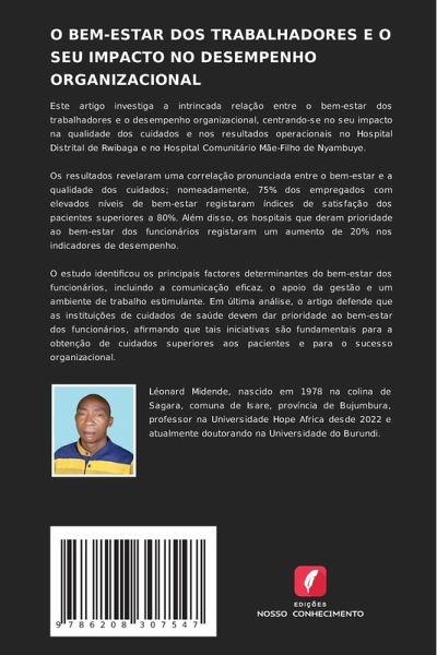 Este artigo investiga a intrincada relação entre o bem-estar dos trabalhadores e o desempenho organizacional, centrando-se no seu impacto na qualidade dos cuidados e nos resultados operacionais no Hospital Distrital de Rwibaga e no Hospital Comunitário Mãe-Filho de Nyambuye.Os resultados revelaram uma correlação pronunciada entre o bem-estar e a qualidade dos cuidados; nomeadamente, 75% dos empregados com elevados níveis de bem-estar registaram índices de satisfação dos pacientes superiores a 80%. Além disso, os hospitais que deram prioridade ao bem-estar dos funcionários registaram um aumento de 20% nos indicadores de desempenho. O estudo identificou os principais factores determinantes do bem-estar dos funcionários, incluindo a comunicação eficaz, o apoio da gestão e um ambiente de trabalho estimulante. Em última análise, o artigo defende que as instituições de cuidados de saúde devem dar prioridade ao bem-estar dos funcionários, afirmando que tais iniciativas são fundamentais para a obtenção de cuidados superiores aos pacientes e para o sucesso organizacional.