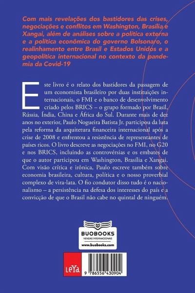 O economista Paulo Nogueira Batista Jr. narra os bastidores de sua experiência no FMI e nos BRICS em textos sobre nacionalismo, economia, cultura, política e nosso complexo de vira-lata Finalista do Prêmio Jabuti 2020 na categoria Ciências Sociais, O Brasil não cabe no quintal de ninguém, de Paulo Nogueira Batista Jr., ganha nova edição ampliada, revista e atualizada. O livro traz o relato dos bastidores da passagem de um economista brasileiro por duas instituições internacionais, o FMI e o banco de desenvolvimento criado pelos BRICS ¿ o grupo de países emergentes. Com estilo leve, em que alterna humor e emoção, ironia e análise, ele narra embates entre países e dentro do governo brasileiro em temas como crises econômicas e a organização do sistema financeiro global, abordando ainda o nosso conhecido complexo de vira-lata. Esta edição traz novas revelações dos bastidores das crises, negociações e conflitos em Washington, Brasília e Xangai, além de análises sobre a política externa e a política econômica do governo Bolsonaro, o realinhamento entre Brasil e Estados Unidos e a geopolítica internacional no contexto da pandemia da Covid-19. Nas palavras do autor, o que une essa grande variedade de assuntos é o Brasil e ¿uma certa tendência a acreditar que nosso país tem um valor muito especial ¿ ainda que nós, brasileiros, nem sempre estejamos à sua alturä. O nacionalismo é um elemento sempre presente na obra. Após discutir suas ambivalências e armadilhas, Paulo Nogueira Batista Jr. argumenta que o brasileiro costuma perder de vista a dimensão e o potencial do Brasil ¿ país capaz, como poucos, de atuar com autonomia e desenvoltura no plano internacional. Foi o que o autor vivenciou durante a maior parte do tempo em que trabalhou em Washington, época em que o Brasil era reconhecido, segundo ele, como polo dinâmico e independente num mundo cada vez mais multipolar. E foi o que perdemos, ressalta o autor, desde a crise política e econômica do final do governo Dilma Rousseff e, mais ainda, com os governos de Michel Temer e agora de Jair Bolsonaro. São textos que olham para o futuro, na esperança, fundada na experiência, de que o Brasil possa encontrar o caminho do desenvolvimento ¿ com justiça social, democracia, independência ¿ e de que, nas palavras do autor, ¿a nossa voz se fará ouvir de novo em todos os cantos do mundo, e mais forte, em defesa de valores humanos que o brasileiro, talvez como ninguém, tem condições de vivenciar e transmitir: a doçura, a versatilidade, a criatividade, a imaginação, a alegria de viver¿.