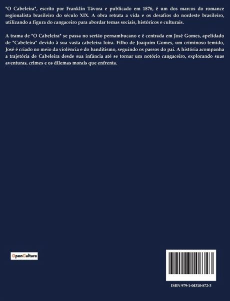 "O Cabeleira" é uma obra de Franklin Távora que se insere na literatura regionalista do Brasil, mais especificamente na literatura do norte. Publicado em 1876, o romance é ambientado no sertão pernambucano e narra a história de José Gomes, conhecido como Cabeleira, um dos primeiros cangaceiros do Brasil. A narrativa explora a vida de Cabeleira e seu pai, Joaquim Gomes, destacando a violência e as dificuldades enfrentadas no sertão durante o século XVIII. O livro é dividido em dezoito capítulos, cada um aprofundando-se nas aventuras e desventuras dos personagens principais, enquanto retrata a luta pela sobrevivência em um ambiente hostil e a busca por justiça em uma sociedade marcada pela desigualdade e pela brutalidade. Távora utiliza uma linguagem rica e descritiva para capturar a essência do sertão e seus habitantes, oferecendo ao leitor uma visão detalhada da cultura e das tradições da região. A obra é um exemplo significativo do movimento literário conhecido como "Romantismo Regionalista", que buscava retratar a realidade das diferentes regiões do Brasil, destacando suas particularidades e desafios.