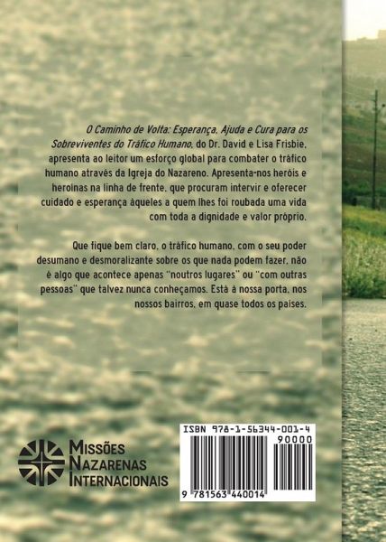 O Caminho de Volta: Esperança, Ajuda e Cura para os Sobreviventes do Tráfico Humano, do Dr. David e Lisa Frisbie, apresenta ao leitor um esforço global para combater o tráfico humano através da Igreja do Nazareno. Apresenta-nos heróis e heroínas na linha de frente, que procuram intervir e oferecer cuidado e esperança àqueles a quem lhes foi roubada uma vida com toda a dignidade e valor próprio. Que fique bem claro, o tráfico humano, com o seu poder desumano e desmoralizante sobre os que nada podem fazer, não é algo que acontece apenas "noutros lugares" ou "com outras pessoas" que talvez nunca conheçamos. Está à nossa porta, nos nossos bairros, em quase todos os países.