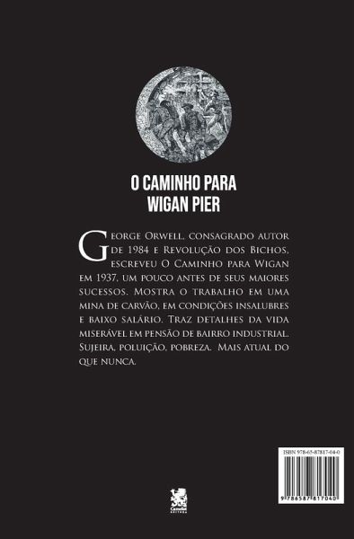 George Orwell, consagrado autor de 1984 e Revolução dos Bichos, escreveu o Caminho para Wigan Pier em 1937, um pouco antes de seus maiores sucessos. Mostra o trabalho em uma mina de carvão, em condições insalubres e baixo salário. Traz detalhes da vida miserável em pensão do bairro industrial. Sujeira, poluição, pobreza. Mais atual do que nunca.