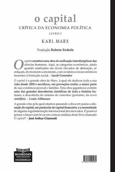 Obra prima de Marx, considerada a mais profunda investigaçøo crítica do modo de produçøo capitalista. Esta ediçøo conta com introduções de Jacob Gorender, José Arthur Giannotti e Louis Althusser, além de texto de orelha de Francisco de Oliveira.