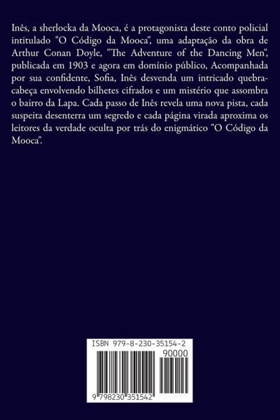 Inês, a sherlocka da Mooca, é a protagonista deste conto policial intitulado "O Código da Mooca", uma adaptação da obra de Arthur Conan Doyle, "The Adventure of the Dancing Men", publicada em 1903 e agora em domínio público, Acompanhada por sua confidente, Sofia, Inês desvenda um intricado quebra-cabeça envolvendo bilhetes cifrados e um mistério que assombra o bairro da Lapa. Cada passo de Inês revela uma nova pista, cada suspeita desenterra um segredo e cada página virada aproxima os leitores da verdade oculta por trás do enigmático "O Código da Mooca".