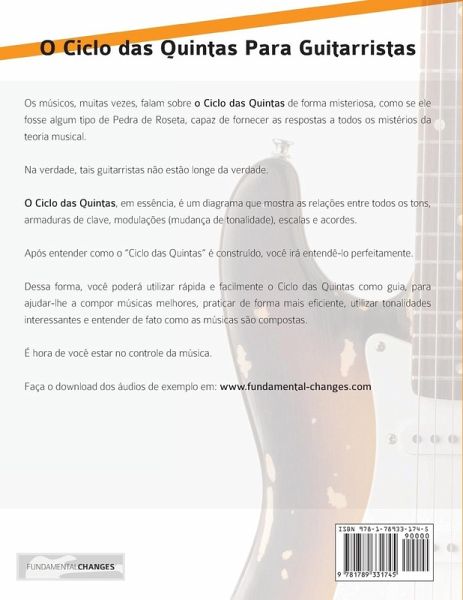 Domine o Ciclo das Quintas e Descubra o Código Secreto da Teoria Musical ¿ Descubra como construir qualquer escala - em qualquer tonalidade ¿ Entenda como funcionam as armaduras de clave ¿ Faça mudanças de tonalidade de forma musical e efetiva ¿ Aprenda como aplicar e perceber a teoria musical na guitarra ¿ Aprenda como descobrir instantaneamente as notas de qualquer escala maior ou menor. O Ciclo das Quintas Para Guitarristas ¿ Você conhece armaduras de clave, tonalidades e escalas, mas não sabe como elas funcionam juntas? ¿ Você gostaria de ter liberdade para construir e utilizar as escalas corretas na guitarra? ¿ Você deseja saber quais notas tocar exatamente em qualquer escala maior ou menor? ¿ Você quer aprender como mudar de tonalidade de forma suave e fácil? O Ciclo das Quintas Para Guitarristas irá lhe ensinar a construir, entender e utilizar as bases da teoria musical de forma rápida e fácil, para que você se torne um músico melhor. Aqui Está O Que Você Adquire: ¿ Um curso completo, baseado nos princípios da teoria musical, que lhe permitirá construir, entender e dominar o Ciclo das Quintas ¿ Descubra como construir escalas maiores e escalas relativas menores ¿ Entenda como funcionam as armaduras de clave e aprenda como descobrir instantaneamente as notas de qualquer escala ¿ Uma dica rápida sobre como descobrir as notas de qualquer escala, utilizando apenas o braço da guitarra! Bônus: Aprenda como notar instantaneamente as seis mudanças "secretas" de tonalidades, utilizando escalas relativas, as quais você poderá utilizar nas suas composições e shows.