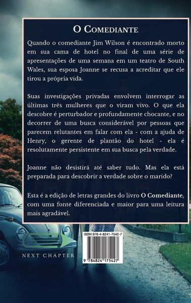 Quando o comediante Jim Wilson é encontrado morto em sua cama de hotel no final de uma série de apresentações de uma semana em um teatro de South Wales, sua esposa Joanne se recusa a acreditar que ele tirou a própria vida. Suas investigações privadas envolvem interrogar as últimas três mulheres que o viram vivo. O que ela descobre é perturbador e profundamente chocante, e no decorrer de uma busca considerável por pessoas que parecem relutantes em falar com ela - com a ajuda de Henry, o gerente de plantão do hotel - ela é resolutamente persistente em sua busca pela verdade. Joanne não desistirá até saber tudo. Mas ela está preparada para descobrir a verdade sobre o marido? Esta é a edição de letras grandes do livro O Comediante, com uma fonte diferenciada e maior para uma leitura mais agradável.