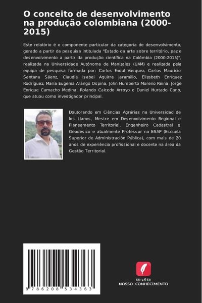 Este relatório é o componente particular da categoria de desenvolvimento, gerado a partir da pesquisa intitulada "Estado da arte sobre território, paz e desenvolvimento a partir da produção científica na Colômbia (2000-2015)", realizada na Universidade Autónoma de Manizales (UAM) e realizada pela equipa de pesquisa formada por: Carlos Fadul Vásquez, Carlos Mauricio Santana Sáenz, Claudia Isabel Aguirre Jaramillo, Elizabeth Enríquez Rodríguez, María Eugenia Arango Ospina, John Humberto Moreno Reina, Jorge Enrique Camacho Medina, Rolando Caicedo Arroyo e Daniel Hurtado Cano, que atuou como investigador principal.