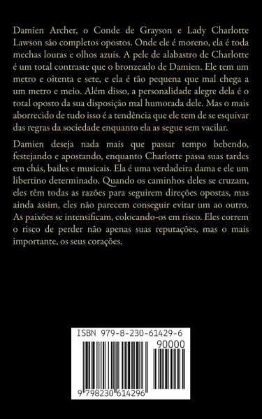 Damien Archer, o Conde de Grayson e Lady Charlotte Lawson são completos opostos. Onde ele é moreno, ela é toda mechas louras e olhos azuis. A pele de alabastro de Charlotte é um total contraste que o bronzeado de Damien. Ele tem um metro e oitenta e sete, e ela é tão pequena que mal chega a um metro e meio. Além disso, a personalidade alegre dela é o total oposto da sua disposição mal humorada dele. Mas o mais aborrecido de tudo isso é a tendência que ele tem de se esquivar das regras da sociedade enquanto ela as segue sem vacilar. Damien deseja nada mais que passar tempo bebendo, festejando e apostando, enquanto Charlotte passa suas tardes em chás, bailes e musicais. Ela é uma verdadeira dama e ele um libertino determinado. Quando os caminhos deles se cruzam, eles têm todas as razões para seguirem direções opostas, mas ainda assim, eles não parecem conseguir evitar um ao outro. As paixões se intensificam, colocando-os em risco. Eles correm o risco de perder não apenas suas reputações, mas o mais importante, os seus corações.