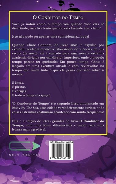 Você já notou como o tempo voa quando você está se divertindo, mas fica lento quando está fazendo algo chato? Isso não pode ser apenas uma coincidência... pode? Quando Chase Connors, de treze anos, é expulso por explodir acidentalmente o laboratório de ciências de sua escola (de novo), ele é enviado para uma nova e estranha academia dirigida por um diretor imperioso, onde o próprio tempo parece ter quebrado! Em pouco tempo, Chase é lançado em uma aventura ousada e com reviravoltas no tempo que muda tudo o que ele pensa que sabe sobre si mesmo. E Incas. E piratas. E corujas. E todo o tempo e espaço! 'O Condutor do Tempo' é o segundo livro ambientado em Bisby By The Sea, uma cidade verdadeiramente curiosa onde coisas estranhas costumam acontecer com muita frequência! Esta é a edição de letras grandes do livro O Condutor do Tempo, com uma fonte diferenciada e maior para uma leitura mais agradável.