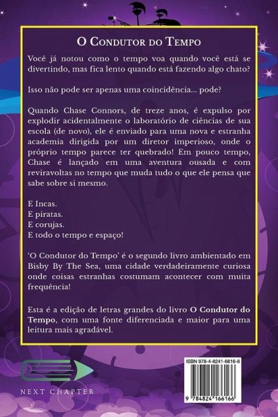 Você já notou como o tempo voa quando você está se divertindo, mas fica lento quando está fazendo algo chato? Isso não pode ser apenas uma coincidência... pode? Quando Chase Connors, de treze anos, é expulso por explodir acidentalmente o laboratório de ciências de sua escola (de novo), ele é enviado para uma nova e estranha academia dirigida por um diretor imperioso, onde o próprio tempo parece ter quebrado! Em pouco tempo, Chase é lançado em uma aventura ousada e com reviravoltas no tempo que muda tudo o que ele pensa que sabe sobre si mesmo. E Incas. E piratas. E corujas. E todo o tempo e espaço! 'O Condutor do Tempo' é o segundo livro ambientado em Bisby By The Sea, uma cidade verdadeiramente curiosa onde coisas estranhas costumam acontecer com muita frequência! Esta é a edição de letras grandes do livro O Condutor do Tempo, com uma fonte diferenciada e maior para uma leitura mais agradável.