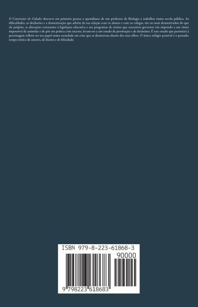 O Construtor de Cidades descreve em primeira pessoa o quotidiano de um professor de Biologia a trabalhar numa escola pública. As dificuldades, as desilusões e a desmotivação que advêm da sua relação com os alunos e com os colegas, tão ou mais desmotivados do que ele próprio, as alterações constantes à legislação educativa e aos programas de ensino que sucessivos governos vão impondo a um ritmo impossível de assimilar e de pôr em prática com sucesso, levam-no a um estado de prostração e de desânimo. É esse estado que permitirá à personagem refletir no seu papel numa sociedade em crise que se desmorona diante dos seus olhos. O único refúgio possível é o passado, tempo mítico de amores, de ilusões e de felicidade.