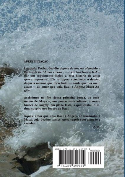 APRESENTAÇÃO Laurinda Rocha, decidiu depois de nos ter oferecido a Parte I deste "Amor eterno", ¿ e em boa hora o fez! ¿ dar um seguimento lógico a esta história de amor quase impossível. Ela vai agora contar-nos o destino daquela menina que foi o fruto - ainda que por mero acaso ¿ do amor que unia Raul a Angély: Maya Angély. Assistimos no fim dessa primeira época, ao casamento de Maya e, um pouco mais adiante, à morte brusca de Angély, em plena festa, a qual exalou o último suspiro nos braços de Raul. Aquele amor se transmitiu a Maya, cujo destino vamos agora seguir com atenção e carinho.