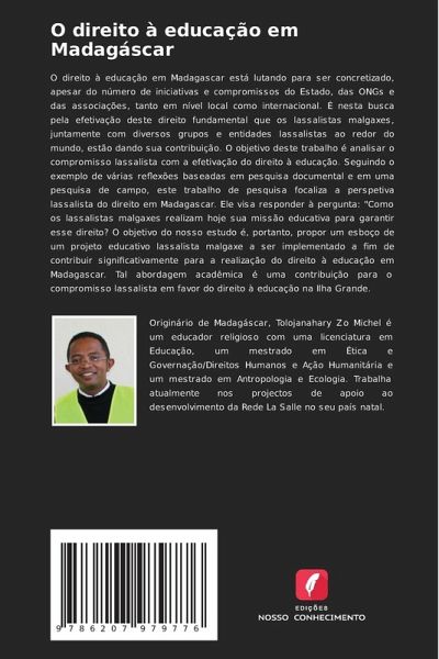 O direito à educação em Madagascar está lutando para ser concretizado, apesar do número de iniciativas e compromissos do Estado, das ONGs e das associações, tanto em nível local como internacional. É nesta busca pela efetivação deste direito fundamental que os lassalistas malgaxes, juntamente com diversos grupos e entidades lassalistas ao redor do mundo, estão dando sua contribuição. O objetivo deste trabalho é analisar o compromisso lassalista com a efetivação do direito à educação. Seguindo o exemplo de várias reflexões baseadas em pesquisa documental e em uma pesquisa de campo, este trabalho de pesquisa focaliza a perspetiva lassalista do direito em Madagascar. Ele visa responder à pergunta: "Como os lassalistas malgaxes realizam hoje sua missão educativa para garantir esse direito? O objetivo do nosso estudo é, portanto, propor um esboço de um projeto educativo lassalista malgaxe a ser implementado a fim de contribuir significativamente para a realização do direito à educação em Madagascar. Tal abordagem acadêmica é uma contribuição para o compromisso lassalista em favor do direito à educação na Ilha Grande.