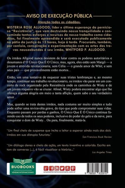 Os irmãos Allgood nunca desistem de lutar contra os poderes autoritários e desumanos d'O Único Que É O Único, mas, agora, eles estão sem Margô - a jovem e atrevida revolucionária; sem Célia - o grande amor de Whit; e sem seus pais - que provavelmente estão mortos... Então, em uma tentativa de esquecer suas tristes lembranças e, ao mesmo tempo, continuar seu trabalho revolucionário, os irmãos vão parar em um concerto de rock organizado pela Resistência onde os caminhos de Wisty e de um jovem roqueiro vão se cruzar. Afinal, Wisty poderá encontrar algo que lhe ofereça alguma alegria em meio a tanta aflição, quem sabe o seu verdadeiro amor... Mas, quando se trata destes irmãos, nada costuma ser muito simples e tudo pode sofrer uma reviravolta grave, do tipo que pode comprometer suas vidas. Enquanto passam por perdas e ganhos, O Único Que É O Único continua fazendo uso de todos os seus poderes, inclusive do poder do gelo e da neve, para conquistar o dom de Wisty... Ou para, finalmente, matá-la.