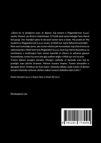 Eselamu Alaikum wa Rahmatullahi wa Bereketehu. Mangle phralalen hem phenjalen so nisarden te ¿itosaren akava Lil O Drom e Asvengo taro o Bashir Rahim. Ka di¿hen ano akava Lil i istroija tari i tragedija ani Kerbela taro o mudardipe e familija e mangle Pejgamberese Muhammad (s.a.a.). Andre si tumen o haber amaro Imamoso Hussein (a.s.) hem o sebepi sose ¿elo pire familijasa ani Kerbela. Akava lil si irime ani amari romani ¿hib (kosovako dialekt) hem me zahfaliman maj anglal amare Allahe (¿eleanehu) hem mungre familija so pomoarde man ano akava lil. Nadiman ko Allah (aza wäal) kaj akava Lil te avol kabuli amendar hem kova ko ka ¿itosarol akava lil te avol lese jek poüno hem te pin¿aren e Ehlul Beyte so maj läe.