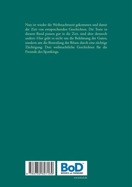 Nun ist wieder die Weihnachtszeit gekommen und damit die Zeit von entsprechenden Geschichten. Die Texte in diesem Band passen gut in die Zeit, sind aber dennoch anders: Hier geht es nicht um die Belohnung der Guten, sondern um die Bestrafung der Bösen durch eine tüchtige Züchtigung. Drei weihnachtliche Geschichten für die Freunde des Spankings.