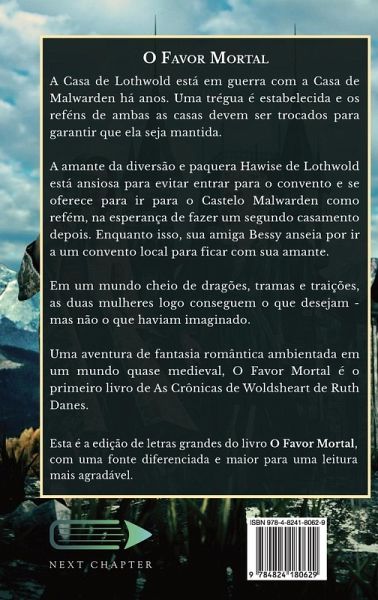 A Casa de Lothwold está em guerra com a Casa de Malwarden há anos. Uma trégua é estabelecida e os reféns de ambas as casas devem ser trocados para garantir que ela seja mantida. A amante da diversão e paquera Hawise de Lothwold está ansiosa para evitar entrar para o convento e se oferece para ir para o Castelo Malwarden como refém, na esperança de fazer um segundo casamento depois. Enquanto isso, sua amiga Bessy anseia por ir a um convento local para ficar com sua amante. Em um mundo cheio de dragões, tramas e traições, as duas mulheres logo conseguem o que desejam - mas não o que haviam imaginado. Uma aventura de fantasia romântica ambientada em um mundo quase medieval, O Favor Mortal é o primeiro livro de As Crônicas de Woldsheart de Ruth Danes. Esta é a edição de letras grandes do livro O Favor Mortal, com uma fonte diferenciada e maior para uma leitura mais agradável.