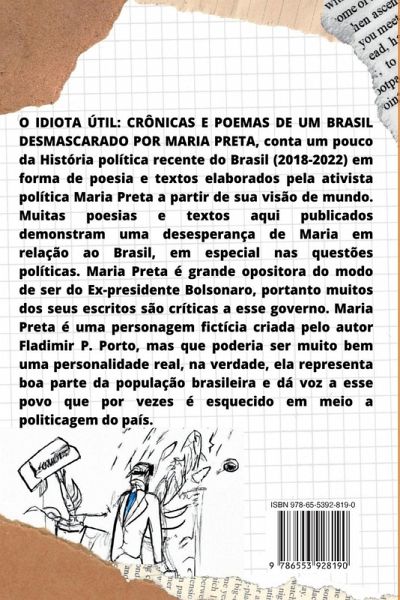 O livro O IDIOTA ÚTIL: CRÔNICAS E POEMAS DE UM BRASIL DESMASCARADO POR MARIA PRETA, conta um pouco da História política recente do Brasil (2018-2022)