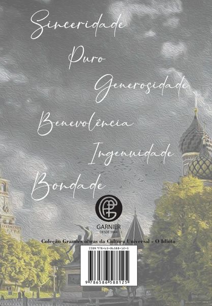 O Idiota Príncipe Míchkin é a tentativa de Dostoiévski em imaginar o ser humano ideal em um padrão sentimentos e atitudes altruístas,em que sete pecados capitais não se justificassem. em Michkin era como se juntassem as capacidades de redimir ofensas em perdão a solidariedade e o discernimento o correto era como se irmão fosse de Jesus Cristo e ou Dom Quixote tamanho os extremos das atitudes.Ainda Dostoiévski assim revela um misto de biografia como a sua experiência de quase morte no paredão de fuzilamento falando sobre o significado da vida e da morte - e a sua epilepsia e a paixão por…mehr
