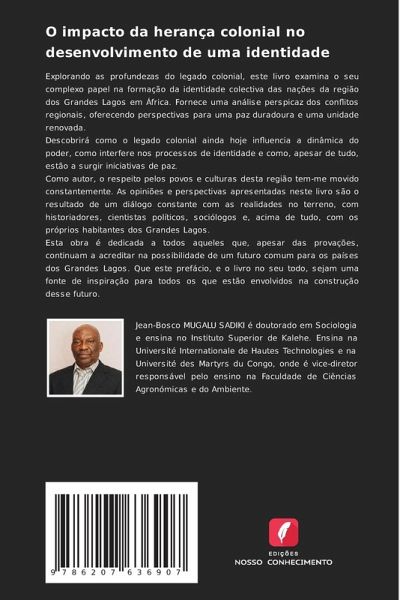 Explorando as profundezas do legado colonial, este livro examina o seu complexo papel na formação da identidade colectiva das nações da região dos Grandes Lagos em África. Fornece uma análise perspicaz dos conflitos regionais, oferecendo perspectivas para uma paz duradoura e uma unidade renovada.Descobrirá como o legado colonial ainda hoje influencia a dinâmica do poder, como interfere nos processos de identidade e como, apesar de tudo, estão a surgir iniciativas de paz.Como autor, o respeito pelos povos e culturas desta região tem-me movido constantemente. As opiniões e perspectivas apresentadas neste livro são o resultado de um diálogo constante com as realidades no terreno, com historiadores, cientistas políticos, sociólogos e, acima de tudo, com os próprios habitantes dos Grandes Lagos.Esta obra é dedicada a todos aqueles que, apesar das provações, continuam a acreditar na possibilidade de um futuro comum para os países dos Grandes Lagos. Que este prefácio, e o livro no seu todo, sejam uma fonte de inspiração para todos os que estão envolvidos na construção desse futuro.