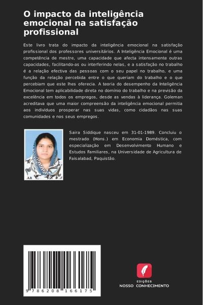 Este livro trata do impacto da inteligência emocional na satisfação profissional dos professores universitários. A Inteligência Emocional é uma competência de mestre, uma capacidade que afecta intensamente outras capacidades, facilitando-as ou interferindo nelas, e a satisfação no trabalho é a relação efectiva das pessoas com o seu papel no trabalho, e uma função da relação percebida entre o que queriam do trabalho e o que percebiam que este lhes oferecia. A teoria do desempenho da Inteligência Emocional tem aplicabilidade direta no domínio do trabalho e na previsão da excelência em todos os empregos, desde as vendas à liderança. Goleman acreditava que uma maior compreensão da inteligência emocional permitia aos indivíduos prosperar nas suas vidas, como cidadãos nas suas comunidades e nos seus empregos.