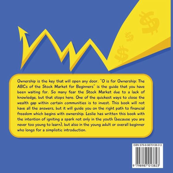 Ownership is the key that will open any door. "O is for Ownership: The ABCs of the Stock Market for Beginners" is the guide that you have been waiting for. So many fear the Stock Market due to a lack of knowledge, but that stops here. One of the quickest ways to close the wealth gap within certain communities is to invest. This book will not have all the answers, but it will guide you on the right path to financial freedom which begins with ownership. Leslie has written this book with the intention of igniting a spark not only in the youth (because you are never too young to learn), but also in the young adult or overall beginner who longs for a simplistic introduction.