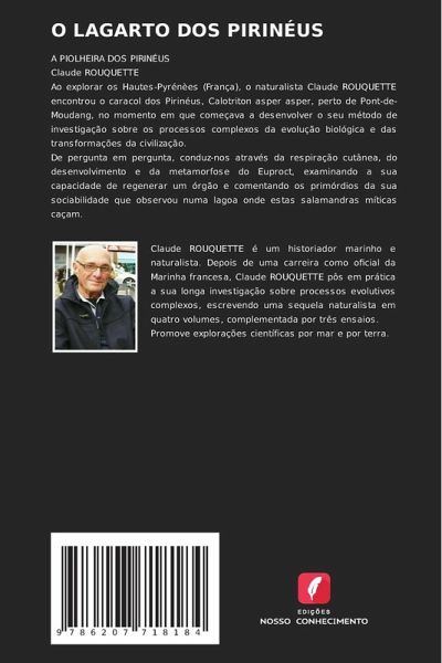 A PIOLHEIRA DOS PIRINÉUS Claude ROUQUETTE Ao explorar os Hautes-Pyrénèes (França), o naturalista Claude ROUQUETTE encontrou o caracol dos Pirinéus, Calotriton asper asper, perto de Pont-de-Moudang, no momento em que começava a desenvolver o seu método de investigação sobre os processos complexos da evolução biológica e das transformações da civilização. De pergunta em pergunta, conduz-nos através da respiração cutânea, do desenvolvimento e da metamorfose do Euproct, examinando a sua capacidade de regenerar um órgão e comentando os primórdios da sua sociabilidade que observou numa lagoa onde estas salamandras míticas caçam.