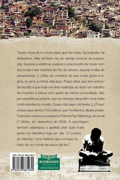 O autor revela como um livro, que ele encontrou no lixo quando tinha 8 anos de idade, mudou sua vida para sempre. Morador do Complexo do Alemão, um dos locais mais violentos do Rio de Janeiro, Otávio criou em sua comunidade o projeto Ler é 10 - Favela, cujo objetivo é ensinar às crianças o prazer da leitura. Apesar da violência, do tráfico de drogas e da carência de recursos dos moradores das favelas, a história de Otávio prova que o livro tem um grande poder de transformação na vida das crianças e jovens. Uma história de luta e superação tornar realidade um sonho que parecia impossível.