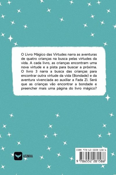 O Livro Mágico das Virtudes narra as aventuras de quatro crianças na busca pelas virtudes da vida. A cada livro, as crianças encontram uma nova virtude e a pista para buscar a próxima. O livro 3 narra a busca das crianças para encontrar outra virtude da vida (Bondade) e da aventura vivenciada ao auxiliar a Fada Zi. Será que as crianças vão encontrar a bondade e preencher mais uma página do livro mágico?