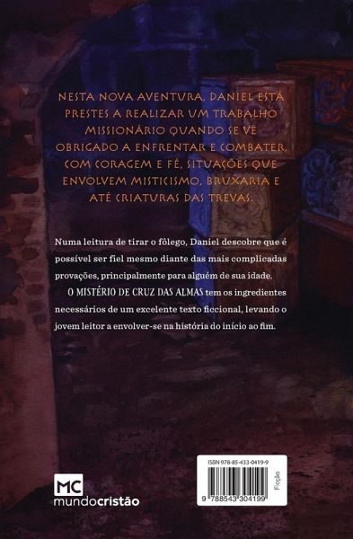 Nesta nova aventura, Daniel está prestes a realizar um trabalho missionário quando se vê obrigado a enfrentar e combater, com coragem e fé, situações que envolvem misticismo, bruxaria e até criaturas das trevas. Numa leitura de tirar o fôlego, Daniel descobre que é possível ser fiel mesmo diante das mais complicadas provações, principalmente para alguém de sua idade. O mistério de Cruz das Almas tem os ingredientes necessários de um excelente texto ficcional, levando o jovem leitor a envolver-se na história do início ao fim.