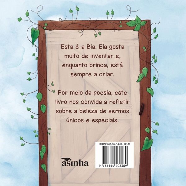 Esta é a Bia. Ela gosta muito de inventar e, enquanto brinca, está sempre a criar. Por meio da poesia, este livro nos convida a refletir sobre a beleza de sermos únicos e especiais.