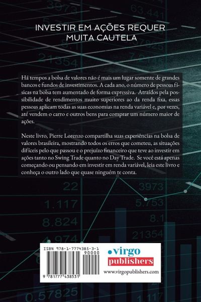 Há tempos a bolsa de valores não é mais um lugar somente de grandes bancos e fundos de investimentos. A cada ano, o número de pessoas físicas na bolsa tem aumentado de forma expressiva. Atraídos pela possibilidade de rendimentos muito superiores ao da renda fixa, essas pessoas aplicam todas as suas economias na renda variável e, por vezes, até vendem o carro e outros bens para comprar um número maior de ações. Neste livro, Pierre Lorenzo compartilha suas experiências na bolsa de valores brasileira, mostrando todos os erros que cometeu, as situações difíceis pelo que passou e o prejuízo financeiro que teve ao investir em ações tanto no Swing Trade quanto no Day Trade. Se você está apenas começando ou pensando em investir em renda variável, leia este livro e conheça o outro lado que quase ninguém te conta.
