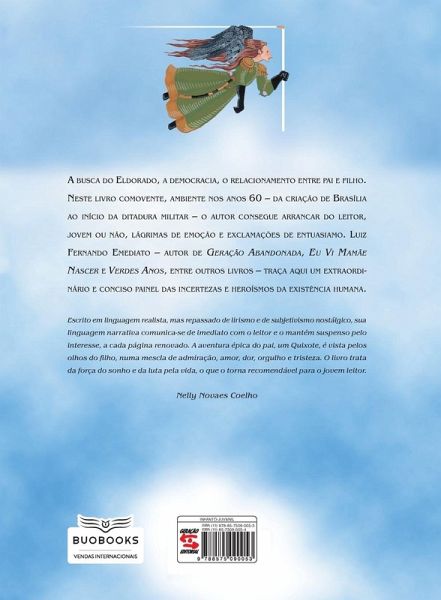 Publicado consecutivamente desde 1981, este livro já se tornou um clássico da moderna literatura infantojuvenil. O livro é recomendado pela FNDE, como leitura suplementar, e como tal adotado em numerosas escolas do segundo grau em todo país. Um menino de 12 anos narra as aventuras do pai, um idealista sonhador, no Brasil dos anos 60, e as consequências, para sua família, do golpe militar de 1964. Numa linguagem poética, que evoca a Bíblia, Emediato traça, em poucas páginas, um sensível painel da busca humana da felicidade e da justiça na terra. A busca do Eldorado, a democracia, o relacionamento entre pai e filho. Neste livro comovente, ambientado nos anos 60 ¿ da criação de Brasília ao início da ditadura militar ¿ o autor consegue arrancar do leitor, jovem ou não, lágrimas de emoção e exclamações de entusiasmo. Luiz Fernando Emediato ¿ autor de Geração Abandonada, Eu Vi Mamãe Nascer e Verdes Anos, entre outros livros ¿ traça aqui um extraordinário e conciso painel das incertezas e heroísmos da existência humana. Escrito em linguagem realista, mas repassado de lirismo e de subjetivismo nostálgico, sua linguagem narrativa comunica-se de imediato com o leitor e o mantém suspenso pelo interesse, a cada página renovado. A aventura épica do pai, um Quixote, é vista pelos olhos do filho, numa mescla de admiração, amor, dor, orgulho e tristeza. O livro trata da força do sonho e da luta pela vida, o que o torna recomendável para o jovem leitor. Nelly Novaes Coelho