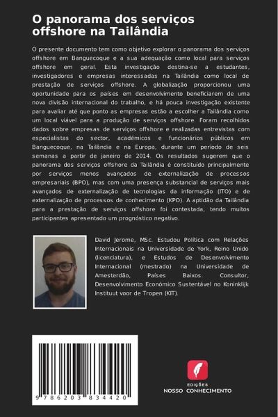 O presente documento tem como objetivo explorar o panorama dos serviços offshore em Banguecoque e a sua adequação como local para serviços offshore em geral. Esta investigação destina-se a estudantes, investigadores e empresas interessadas na Tailândia como local de prestação de serviços offshore. A globalização proporcionou uma oportunidade para os países em desenvolvimento beneficiarem de uma nova divisão internacional do trabalho, e há pouca investigação existente para avaliar até que ponto as empresas estão a escolher a Tailândia como um local viável para a produção de serviços offshore. Foram recolhidos dados sobre empresas de serviços offshore e realizadas entrevistas com especialistas do sector, académicos e funcionários públicos em Banguecoque, na Tailândia e na Europa, durante um período de seis semanas a partir de janeiro de 2014. Os resultados sugerem que o panorama dos serviços offshore da Tailândia é constituído principalmente por serviços menos avançados de externalização de processos empresariais (BPO), mas com uma presença substancial de serviços mais avançados de externalização de tecnologias da informação (ITO) e de externalização de processos de conhecimento (KPO). A aptidão da Tailândia para a prestação de serviços offshore foi contestada, tendo muitos participantes apresentado um prognóstico negativo.