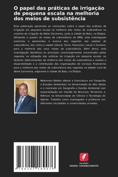 Esta publicação apresenta as conclusões sobre o papel das práticas de irrigação em pequena escala na melhoria dos meios de subsistência no sistema de irrigação de Abine Germama, junto à cidade de Batu, na Etiópia. Utilizando o quadro de meios de subsistência do DFID, esta investigação examinou e apresentou o acesso dos regantes aos capitais de subsistência, tais como o capital natural, físico, financeiro, social e humano, para a melhoria dos seus meios de subsistência. Além disso, esta investigação identificou os principais constrangimentos encontrados pelos regantes na utilização das práticas de irrigação em pequena escala, os factores determinantes da melhoria dos meios de subsistência e avaliou a disponibilidade e a contribuição das organizações de serviços financeiros para a melhoria dos meios de subsistência dos regantes no kebele rural de Abine Garmama, adjacente à cidade de Batu, na Etiópia.