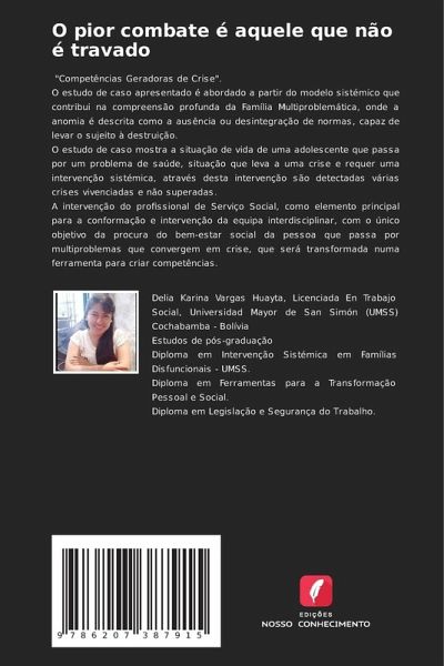 "Competências Geradoras de Crise".O estudo de caso apresentado é abordado a partir do modelo sistémico que contribui na compreensão profunda da Família Multiproblemática, onde a anomia é descrita como a ausência ou desintegração de normas, capaz de levar o sujeito à destruição.O estudo de caso mostra a situação de vida de uma adolescente que passa por um problema de saúde, situação que leva a uma crise e requer uma intervenção sistémica, através desta intervenção são detectadas várias crises vivenciadas e não superadas.A intervenção do profissional de Serviço Social, como elemento principal para a conformação e intervenção da equipa interdisciplinar, com o único objetivo da procura do bem-estar social da pessoa que passa por multiproblemas que convergem em crise, que será transformada numa ferramenta para criar competências.