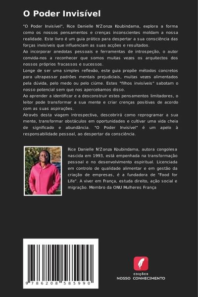 "O Poder Invisível", Rice Danielle N'Zonza Koubindama, explora a forma como os nossos pensamentos e crenças inconscientes moldam a nossa realidade. Este livro é um guia prático para despertar a sua consciência das forças invisíveis que influenciam as suas acções e resultados.Ao incorporar anedotas pessoais e ferramentas de introspeção, o autor convida-nos a reconhecer que somos muitas vezes os arquitectos dos nossos próprios fracassos e sucessos.Longe de ser uma simples reflexão, este guia propõe métodos concretos para ultrapassar padrões mentais prejudiciais, muitas vezes alimentados pela dúvida, pelo medo ou pelo ciúme. Estes "filhos invisíveis" sabotam o nosso potencial sem que nos apercebamos disso.Ao aprender a identificar e a desconstruir estes pensamentos limitadores, o leitor pode transformar a sua mente e criar crenças positivas de acordo com as suas aspirações.Através desta viagem introspectiva, descobrirá como reprogramar a sua mente, transformar obstáculos em oportunidades e cultivar uma vida cheia de significado e abundância. "O Poder Invisível" é um apelo à responsabilidade pessoal, ao despertar da consciência.
