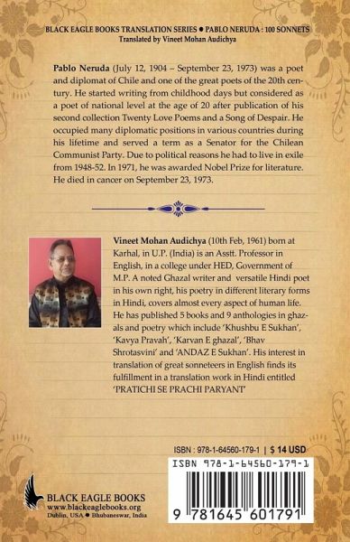 Pablo Neruda (July 12, 1904-september 23, 1973) was a poet and diplomat of Chile and one of the great poets of the 20th century. He started writing from childhood days but considered as a poet of National level at the age of 20 after the publication of his second book. The captain's verses was published in Italy in 1952 during exile, without mentioning the author's name. His name as the author of this book was incorporated after 11years when it was published in Chile in 1963. The Book of Questions was completed only one month before his death.