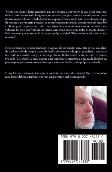 "Como em muitos destes encontros não me chegava a convencer de que eram reais, não tinha a certeza se os havia imaginado, ou antes escrito, pelo menos na minha mente, ou se tinham acontecido de verdade. Sentia-me esquizofrénico e como num desses filmes em que de repente o personagem principal se encontra numa instituição de saúde mental onde lhe explicam pouco a pouco que tudo o que viveu durante os últimos anos, ou em toda a sua vida, não foi mais que fruto da sua mente. Mas então não estarão todos os escritos loucos? Não inventam por acaso a cada dia as suas próprias vidas? Não as estão imaginando a cada minuto?" Neste romance curto acompanhamos o vaguear de um escritor que, entre as ruas da cidade de Irxal, os cafés de sempre, a casa da família de sempre e o hospital psiquiátrico onde está internado um escritor amigo, se deixa perder no limbo instável entre o real e da ficção. No todo "de sempre", a cada esquina uma surpresa. A literatura e a realidade fundem-se, personagens ganham corpo e escritores perdem-se na dúvida da sua própria existência. E nós, leitores, podemos estar seguros do limite entre o real e a ficção? Ou vivemos todos num limbo delicado, também nós com um pé entre o real e o imaginado?