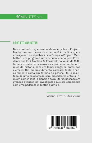 Descubra tudo o que precisa de saber sobre o Projecto Manhattan em menos de uma hora! À medida que a ameaça nazi se espalhava pela Europa, o Projecto Manhattan, um programa ultra-secreto criado pelo Presidente dos EUA Franklin D. Roosevelt no Verão de 1942, tinha a missão de desenvolver a primeira bomba atómica da história, com um lema: chegar lá antes dos alemães. Um empreendimento colossal, tanto financeiramente como em termos de pessoal, foi o resultado de uma colaboração sem precedentes entre a indústria americana, a ciência e os militares, baseada em grandes avanços na investigação nuclear combinada com uma poderosa indústria química.