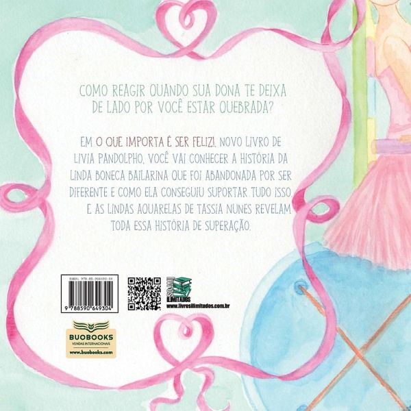 A linda história de uma bailarina muito especial... Em "O que importa é ser feliz!", novo livro de Livia Pandolpho, você vai conhecer a história da linda boneca bailarina que foi abandonada por ser diferente. Tássia Nunes ilustra esta linda e emocionante história de superação. Um livro sensível para crianças de todas as idades.