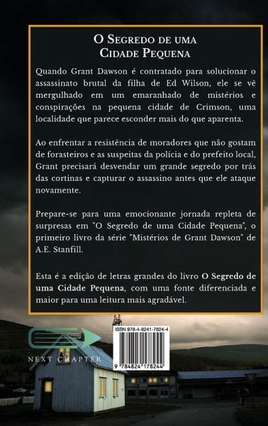 Quando Grant Dawson é contratado para solucionar o assassinato brutal da filha de Ed Wilson, ele se vê mergulhado em um emaranhado de mistérios e conspirações na pequena cidade de Crimson, uma localidade que parece esconder mais do que aparenta. Ao enfrentar a resistência de moradores que não gostam de forasteiros e as suspeitas da polícia e do prefeito local, Grant precisará desvendar um grande segredo por trás das cortinas e capturar o assassino antes que ele ataque novamente. Prepare-se para uma emocionante jornada repleta de surpresas em "O Segredo de uma Cidade Pequena", o primeiro livro da série "Mistérios de Grant Dawson" de A.E. Stanfill. Esta é a edição de letras grandes do livro O Segredo de uma Cidade Pequena, com uma fonte diferenciada e maior para uma leitura mais agradável.