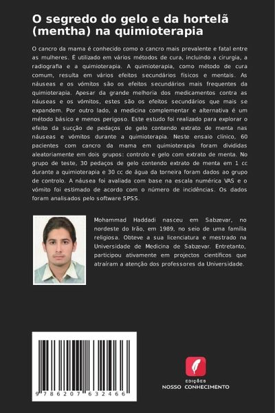 O cancro da mama é conhecido como o cancro mais prevalente e fatal entre as mulheres. É utilizado em vários métodos de cura, incluindo a cirurgia, a radiografia e a quimioterapia. A quimioterapia, como método de cura comum, resulta em vários efeitos secundários físicos e mentais. As náuseas e os vómitos são os efeitos secundários mais frequentes da quimioterapia. Apesar da grande melhoria dos medicamentos contra as náuseas e os vómitos, estes são os efeitos secundários que mais se expandem. Por outro lado, a medicina complementar e alternativa é um método básico e menos perigoso. Este estudo foi realizado para explorar o efeito da sucção de pedaços de gelo contendo extrato de menta nas náuseas e vómitos durante a quimioterapia. Neste ensaio clínico, 60 pacientes com cancro da mama em quimioterapia foram divididas aleatoriamente em dois grupos: controlo e gelo com extrato de menta. No grupo de teste, 30 pedaços de gelo contendo extrato de menta em 1 cc durante a quimioterapia e 30 cc de água da torneira foram dados ao grupo de controlo. A náusea foi avaliada com base na escala numérica VAS e o vómito foi estimado de acordo com o número de incidências. Os dados foram analisados pelo software SPSS.