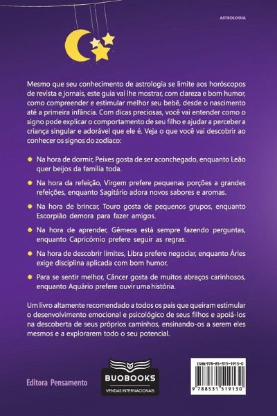 O Signo do Bebê é uma grande contribuição para o campo da astrologia em geral e para pais que desejam compreender melhor os seus filhos. Nesse livro inovador, único no mercado brasileiro, Chrissie Blaze, astróloga profissional, conferencista internacional e autora de vários livros sobre astrologia e espiritualidade nos mostra o uso da astrologia como pano de fundo para nossa compreensão e nos permite apreciar a alma e a personalidade dos nossos filhos, tanto do ponto de vista espiritual quanto prático. A autora oferece ao leitor a oportunidade de ver seus filhos não como indivíduos em desenvolvimento, mas como seres preciosos, nascidos com uma plena gama de qualidades. Esse belo livro estará sempre à disposição para oferecer dicas criativas para tranquilizar os pais ou para provocar sua curiosidade sobre seu bebê ou filho pequeno!