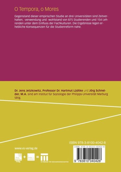 Gegenstand dieser empirischen Studie an drei Universitäten sind Zeitverhalten, -verwendung und -wohlstand von 875 Studierenden und 154 Lehrenden unter dem Einfluss der Fachkulturen. Die Ergebnisse legen erhebliche Konsequenzen für die Studienreform nahe.