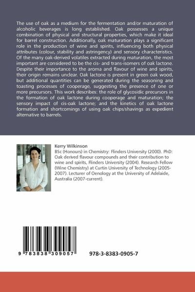 The use of oak as a medium for the fermentation and/or maturation of alcoholic beverages is long established. Oak possesses a unique combination of physical and structural properties, which make it ideal for barrel construction. Additionally, oak maturation plays a significant role in the production of wine and spirits, influencing both physical attributes (colour, stability and astringency) and sensory characteristics. Of the many oak-derived volatiles extracted during maturation, the most important are considered to be the cis- and trans-isomers of oak lactone. Despite their importance to the aroma and flavour of wine and spirits, their origin remains unclear. Oak lactone is present in green oak wood, but additional quantities can be generated during the seasoning and toasting processes of cooperage, suggesting the presence of one or more precursors. This work describes: the role of glycosidic precursors in the formation of oak lactone during cooperage and maturation; the sensory impact of cis-oak lactone; and the kinetics of oak lactone formation and shortcomings of using oak chips/shavings as expedient alternative to barrels.