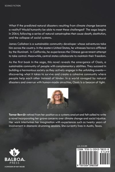 What if the predicted natural disasters resulting from climate change became a reality? Would humanity be able to meet these challenges? The saga begins in 2064, following a series of natural catastrophes that cause death, destitution, and the collapse of social systems. James Callahan is a sustainable community developer whose adventures take him across the country. In the eastern United States, he witnesses horrors afflicted by the Illuminati. In California, he experiences the Chinese government attempt to take control. Meanwhile, central states collaborate to maintain their freedom. As the first book in the saga, this novel reveals the emergence of Oasis, a sustainable community of people with complementary abilities. They succeed in building a harmonious society as they actively engage in the unfolding eventsdiscovering what it takes to survive and create a cohesive community where people help each other instead of hinder. In a world ravaged by natural disasters and overrun with human-made atrocities, Oasis is a beacon of light.