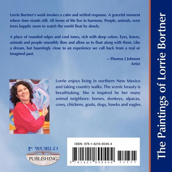 Lorrie Bortner's work invokes a calming and settled response. A graceful moment where time stands still. All forms of life created, live in harmony. People, animals, even trees happily seem to watch our world as they slowly float by. Viewed by us in greater glory of innocent beauty for their trouble. It is a place of rounded edges and cool tones. Rich with deep colors. The eyes, leaves, animals and people smoothly flow and allow us to float along with them like a dream but hauntingly close to an experience one calls back from a real or imagined past. -Thomas J. Johnson Painter and printmaker Lorrie's art are reflections of her self. Reflecting her personality, full of life, color and pure love. Her art refreshes your soul, makes you smile, always fun. You always feel pure love. Sweet Lorrie. -Lydia Garcia Santera Lorrie Bortner's work is fresh and delightful. It is a reflection of who she is, which is very rare in these days of assumptions and pretensions. While her work shows a directness and may seem almost childlike, which is a feat in itself, her vision and knowledge is anything but. Bortner tells a mythological story or broaches upon a topic she deems important to her, yet it is never propagandistic. It always comes down to aesthetics in the end, which in my opinion is what art is about. We are lucky Lorrie chooses to be real and honest, for through her truthfulness we get rich, colorful, fun and astute paintings. -Brenda Euwer Abstract painter It's easy to see why so many people are drawn to Lorrie's work. The bold colors and playful images create a world of color and life that enables us to travel, getting lost in the thoughts that the images create. The colors and images are in motion and they mesmerize, as if reminding us of a vision, or a dream we once had. Her work can be whimsical, yet powerful and bold, brave enough to address women's issues, and yet whimsical enough to invoke the joys of a childhood too soon forgotten. -Carmela Duran Museum Coordinator Millicent Rogers Museum Taos, New Mexico Lorrie paints with great focus and determination, has an original vision and can render subjects of great complexity with remarkable simplicity and forcefulness: she is, in fact, a natural heir to the early expressionists. -Geoffrey Baker Professor Emeritus of Art Maharishi University of Management Lorrie was born in Philadelphia in 1955. As a child she lived in New Jersey, Chicago and New York. She always wanted to be an artist. Her early memories are of museum visits with her family to the museums in New York City, Chicago and Philadelphia. As an adult she obtained an MFA in painting and an MA in education. Painting, creating murals and inspiring and teaching children the arts are her passion. She has received grants and community funding to create over 16 murals with New Mexico youth, thereby teaching the youth teamwork, creative thinking, artistic design and community service. Lorrie has also taught fabric painting, recycled sculpture and colcha embroidery, (a traditional northern New Mexico stitch), in the Taos, New Mexico schools. Her paintings have been shown in exhibitions around the country and in museums including the National Hispanic Cultural Center (with Rainbow Artists), Albuquerque, New Mexico; El Museo Cultural de Santa Fe, (Aun Nos Atrapan), Santa Fe, NM; Museum of Fine Arts, (One of a Kind), Santa Fe, NM; Millicent Rogers Museum, (Sobre Muerte and Miniatures), Taos, NM; and Cedar Rapids Museum of Art, (with Women's Caucus for the Arts), Cedar Rapids, Iowa.