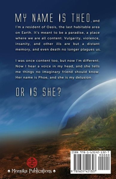 A new dystopian/post-apocalyptic series from a New York Times bestselling author My name is Theo, and I'm a resident of Oasis, the last habitable area on Earth. It's meant to be a paradise, a place where we are all content. Vulgarity, violence, insanity, and other ills are but a distant memory, and even death no longer plagues us. I was once content too, but now I'm different. Now I hear a voice in my head, and she tells me things no imaginary friend should know. Her name is Phoe, and she is my delusion. Or is she?