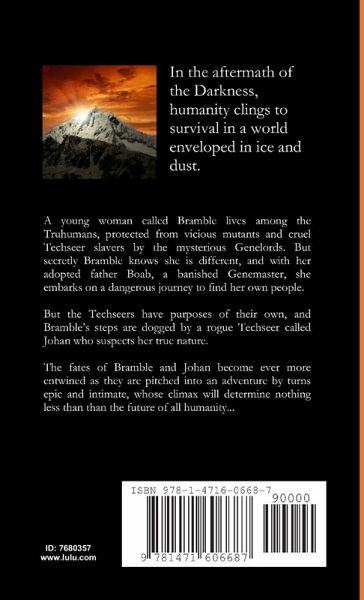 In the aftermath of the Darkness, humanity clings to survival in a world enveloped in ice and dust. A young woman called Bramble lives among the Truhumans, protected from vicious mutants and cruel Techseer slavers by the mysterious Genelords. But secretly Bramble knows she is different, and with her adopted father Boab, a banished Genemaster, she embarks on a dangerous journey to find her own people. But the Techseers have purposes of their own, and Bramble's steps are dogged by a rogue Techseer called Johan who suspects her true nature. The fates of Bramble and Johan become ever more entwined as they are pitched into an adventure by turns epic and intimate, whose climax will determine nothing less than the fate of all humanity...