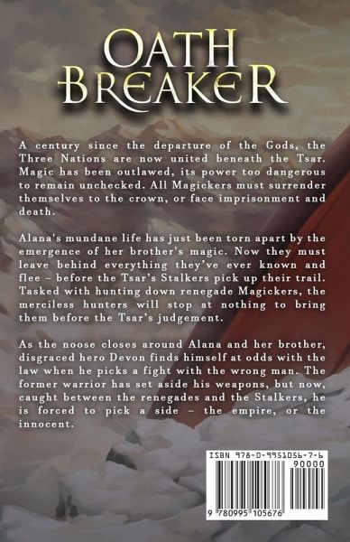 A century since the departure of the Gods, the Three Nations are now united beneath the Tsar. Magic has been outlawed, its power too dangerous to remain unchecked. All Magickers must surrender themselves to the crown, or face imprisonment and death. Alana's mundane life has just been torn apart by the emergence of her brother's magic. Now they must leave behind everything they've ever known and flee - before the Tsar's Stalkers pick up their trail. Tasked with hunting down renegade Magickers, the merciless hunters will stop at nothing to bring them before the Tsar's judgement. As the noose closes around Alana and her brother, disgraced hero Devon finds himself at odds with the law when he picks a fight with the wrong man. The former warrior has set aside his weapons, but now, caught between the renegades and the Stalkers, he is forced to pick a side - the empire, or the innocent.